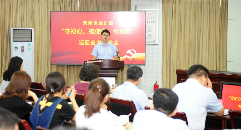 局机关副处级以上干部和全体党员、局属单位测试中心、直推式钻机,取土钻机,环评采样,环评取土,土壤污染采样信息中心、豫矿集团、境外公司、勘查投资公司局管干部和党员代表共120余人参加。