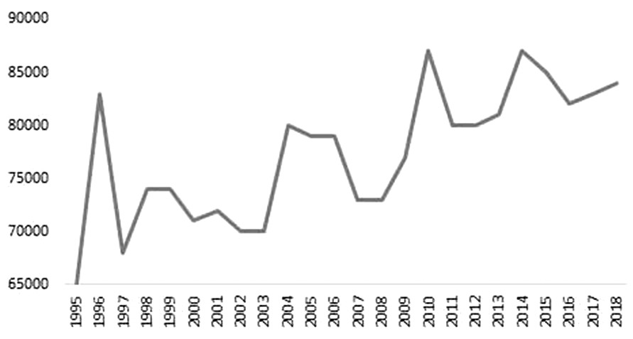中国作为全球第一大钢铁生产国,炼铁高炉炉料结构一般是烧结矿占比约70%,球团占比约20%,块矿占比约10%。虽然国内铁矿石储量丰富,但原矿品位低(平均30%以下),国产原矿只能加工成精粉制作成球团入炉,还需要进口大量粉矿和块矿。据中国海关总署数据,2018年中国进口铁矿石10.64亿吨,进口矿占全国铁矿需求的71.8%。