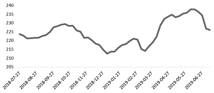据一季度产销报告,BHP受飓风影响铁矿石产量600万—800万吨,2019财年产量目标指导量从2.73亿—2.83亿吨调整到2.65亿—2.70亿吨。FMG受飓风影响铁矿250万吨,2019财年目标从1.7亿吨调整至1.65亿—1.7亿吨。力拓受1月兰伯特港口A泊位火灾及3月飓风的影响,铁矿石产量减少约1400万吨,力拓将其西皮尔巴拉地区铁矿石指导销量从此前的3.38亿—3.5亿吨调整为3.33亿—3.43亿吨。力拓称皮尔巴拉GreaterBrockman矿区的生产上遇到挑战,6月19日晚,力拓再次下调2019年铁矿石目标发运量至3.2亿—3.3亿吨。