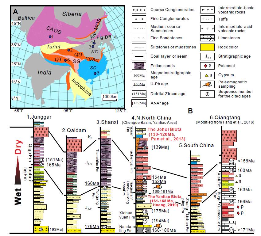图1:侏罗纪-早白垩世沉积记录揭示东亚大陆快速干旱化