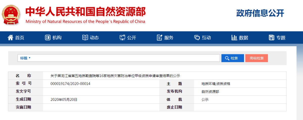 关于黑龙江省第五地质勘查院等16家地质灾害
