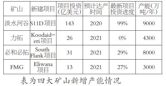 快盈500而必和必拓的SouthFlank项目、力拓的Koodaideri项目和FMG的Eliwana项目均将在2021年才会建成投产。因此,除淡水河谷S11D项目外,2019—2020年四大矿山新建项目产能扩张十分有限。
