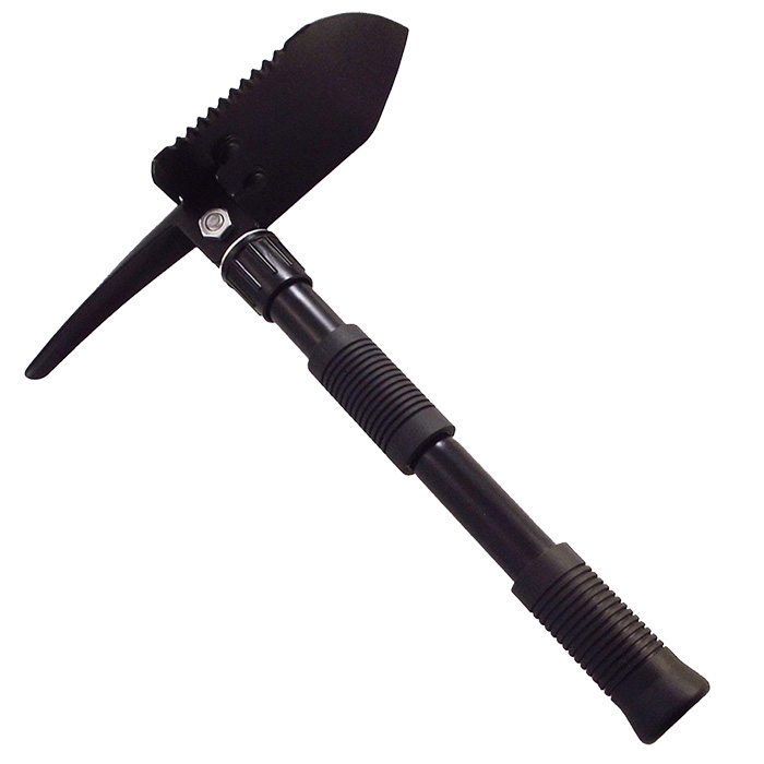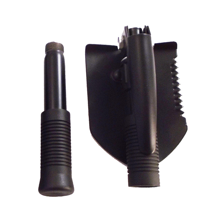 折叠尺寸:长18厘米,宽10厘米. 铲身尺寸为14厘米长,9.5厘米宽,其拾取部分长度为12厘米. 两节铲把总长为30厘米。回火锻钢材质铸成,带刚性锁圈。运输重量为0.9kg。