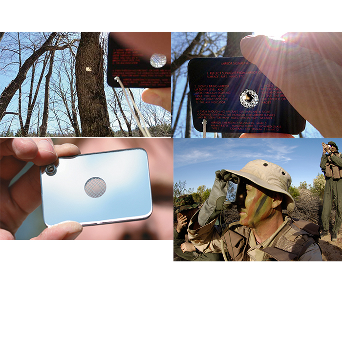 功能特点 适用于野外远距离通讯、发送求生信号。具有瞄准功能,信号传递精确、快捷。可将光信号反射给目标,达到准确通讯效果。天气晴朗时,光信号传递距离可达到百公里以上。阴天或夜间有光源时,也可同样正常使用。平时可做镜子使用。