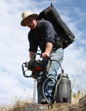 绍尔背包式岩芯取样钻机是一种主要适用于山岭、交通和能源不便地区的小型轻便化取样钻孔设备。采用该背包钻机取样可代替传统的人工挖掘、槽探和井探等取样。它不仅能加快取样工作速度,而且能大量减少植被的破坏,保护环境。通过几十年的经验积累以及在全球几十个国家和地区的实地使用验证,绍尔不断改进和提升产品质量,目前绍尔钻机已经使用了更好的发动机,更顺畅的变速箱以及更加舒适的力学设计,相信绍尔背包钻机会对给您的工作大有裨益。 2019年下旬,绍尔钻机做出了第三次的升级将原本的Komatsu(小松)两冲程发动机更新为更为强悍的Kawasaki(川崎)发动机,并针对一些原第二代的问题进行了修正。绍尔背包钻机目前服务于我国地质勘探、电力勘察、交通检测、仰拱衬砌采样、地质灾害勘查、专业学术研究等领域广泛使用。