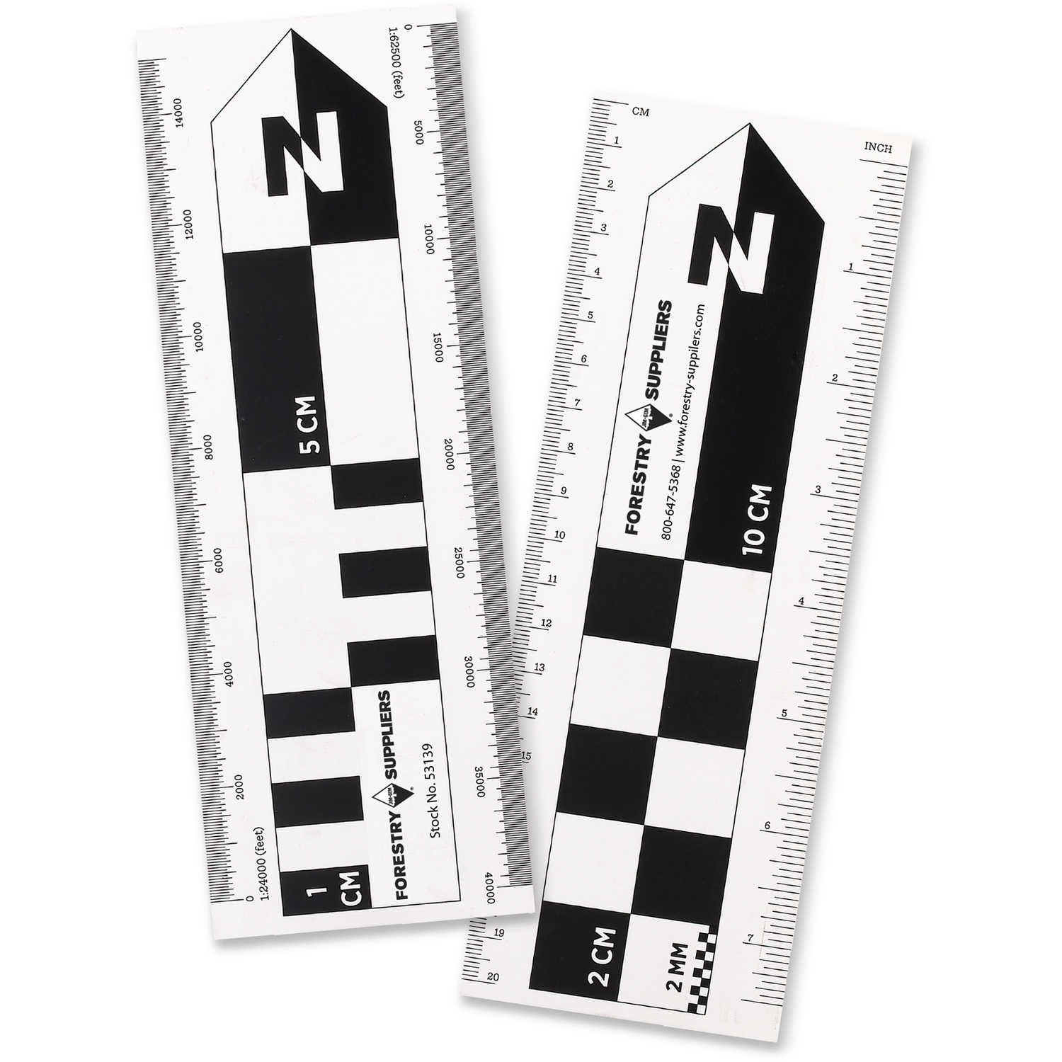该经济型方向指示标尺显示摄影的方位,参考的尺寸包括:正面有1厘米和5厘米的参考长度、反面有2厘米和10厘米的参考长度。正面有公制和英制两种刻度的标尺,反面为1:62500和1:24000的地图比例尺。低光泽度确保摄影时成像更佳。可铅笔在表面进行记录,之后轻松擦掉。总长度为20厘米。